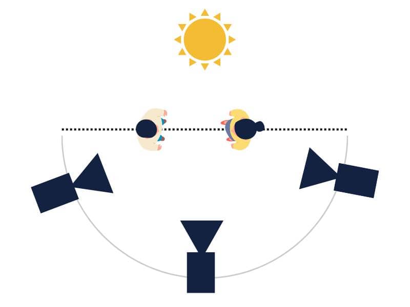 A simple diagram of how you can arrange your camera and actors in relation to the sun.